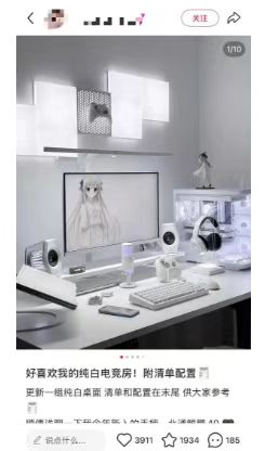 另一个账号专攻“少女心数码”,纯白电脑房笔记 3800 赞,猫爪键帽开箱狂揽 1.7 万赞。