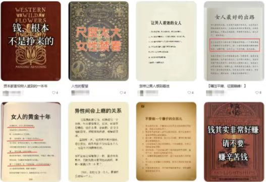 打开拼多多搜“女性成长电子书/女性觉醒资料包”,几块钱打包几十个G,回来改个封面、换个文件夹名,立刻升级为“高阶成长资料库”。