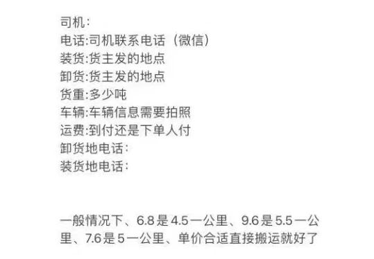 • 货主来电:确认货重、体积、装卸方式,索要真实号码(平台小号无法长期联系),加微信后告知“司机确认后再给定位”。