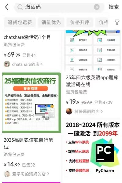 龙哥今天拎出一个冷门却稳赚的小生意:零门槛搬运各类软件激活码,单人单天利润轻松 200+。灵感源于我前段时间学编程——装 PyCharm 时发现正版授权太贵,于是习惯性去各大社区“淘”低价码,几块到十几块就能搞定,相信这也是多数开发者的日常。