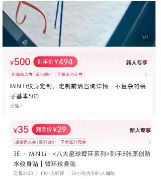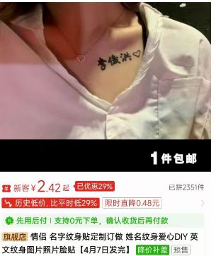纹身向来小众,但“无痛+零后悔”的贴纸一旦打上文化符号,溢价空间瞬间炸裂。同款球鞋能炒到十倍,一张小小纹身贴也能在小红书卖到35元/张,还常常断货,可见需求之猛。
