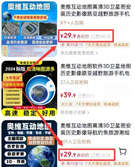 号稳之后开小店上架同款商品,晚上开半小时无人直播,循环播放谷歌地球操作演示,转化率比短视频还高。日销百单只是起步。