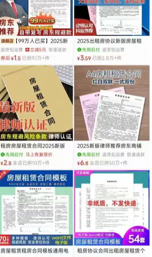 3. 供给:拼多多上全套《房屋租赁合同范本》打包价2.9元,月销量20万+,说明市场饥渴。