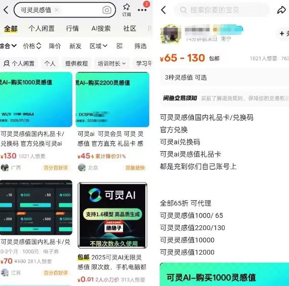 · 电商:闲鱼、淘宝、拼多多挂链接,关键词“可灵 AI 礼品卡”。