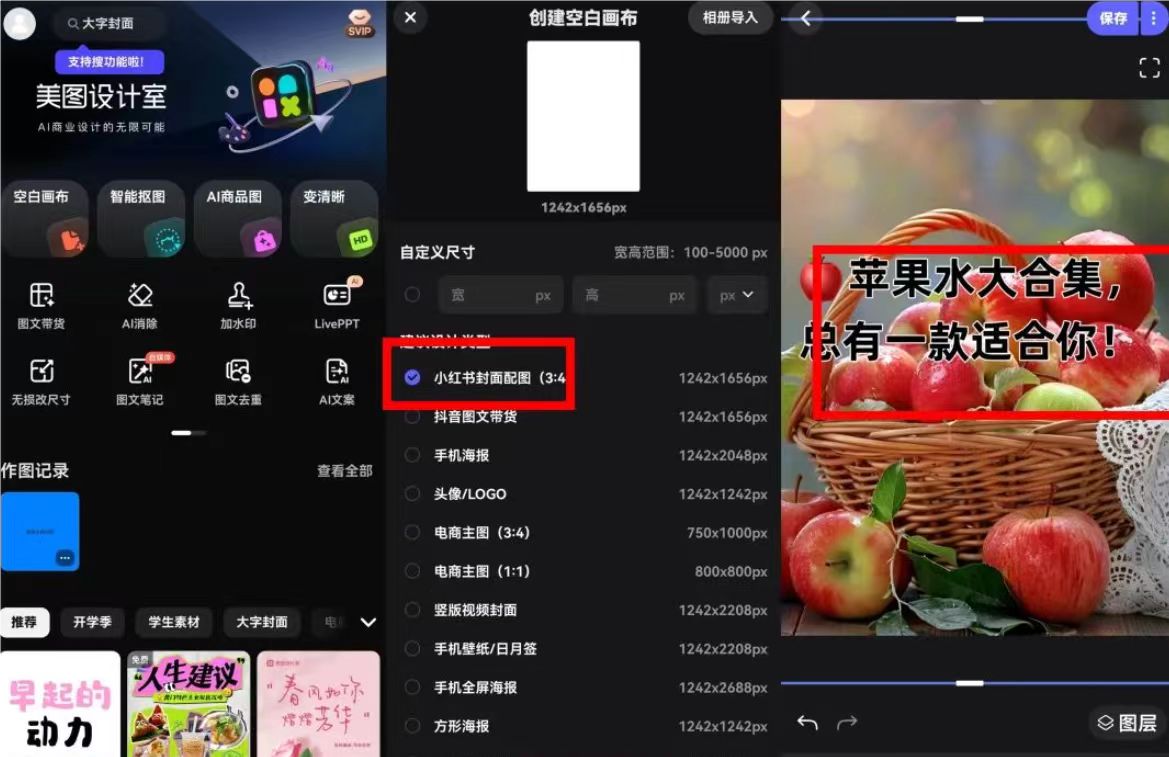作图更简单:打开美图秀秀→设计室→空白画布→选背景→加花字→导出封面与配图,全程5分钟,手残党零门槛。