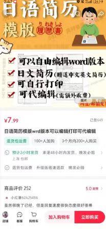专攻想去日企或外企的群体,一份排版精致的日文简历模板,客单价 29.9——59.9,复购率惊人。