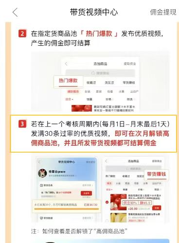 每月1-25号期间,发满30条“过审”视频,次月自动开通挂车权限。